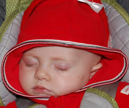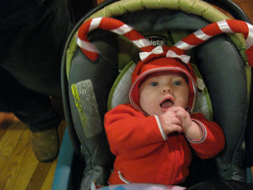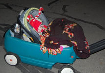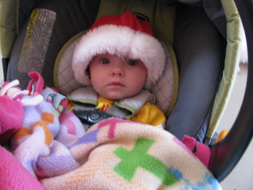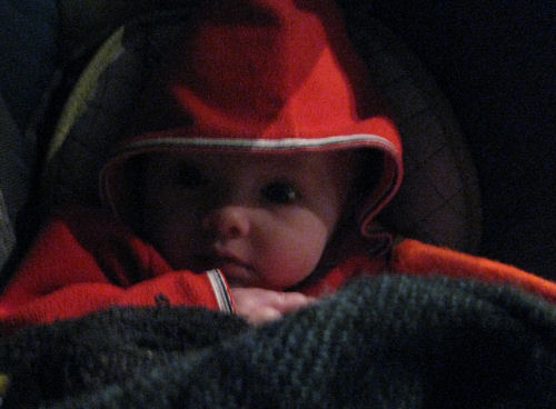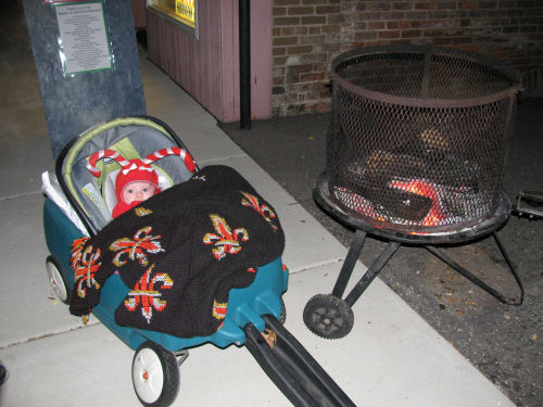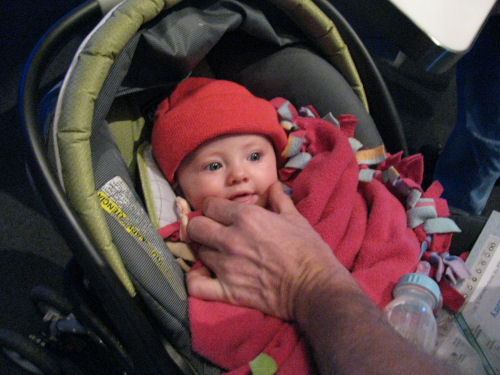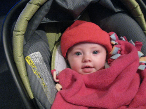 Grandma Kathy forgot Tessa's stoller so she was pulled around in a wagon while covered with an afghan made by the late Stella Ambrose. She liked that.