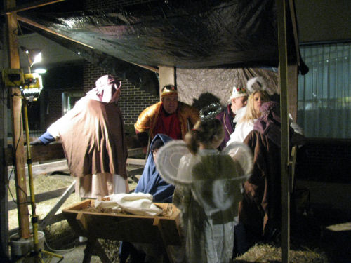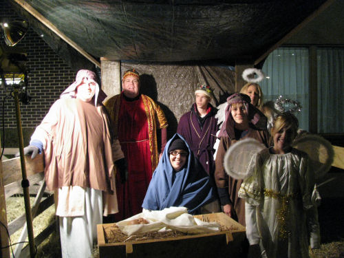 The Live Nativity people milling around....then posing for me