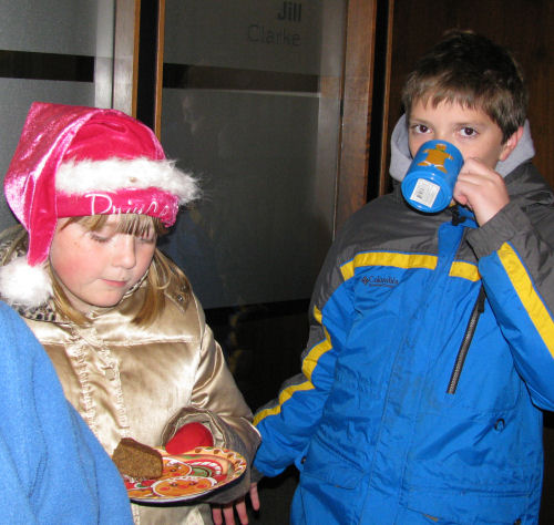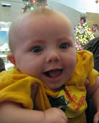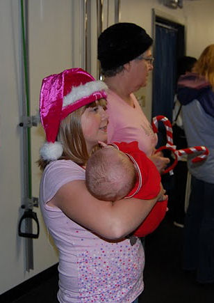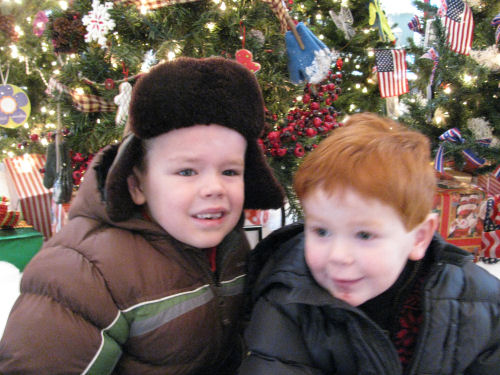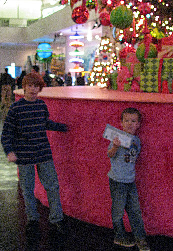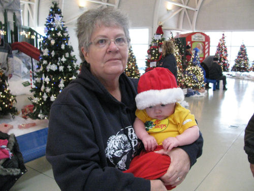 In line to see Santa: Tessa, Grandma Kathy and Hannah....Trevor and Alex