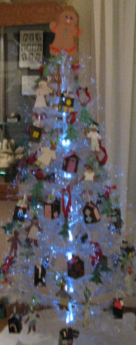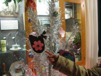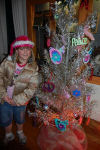 Hannah and her Girl Scout tree. She shows us the ornaments she made. My favorite tree!