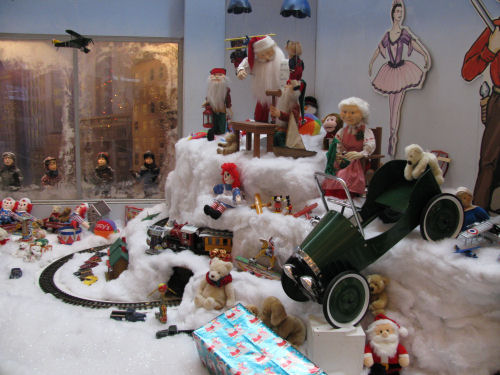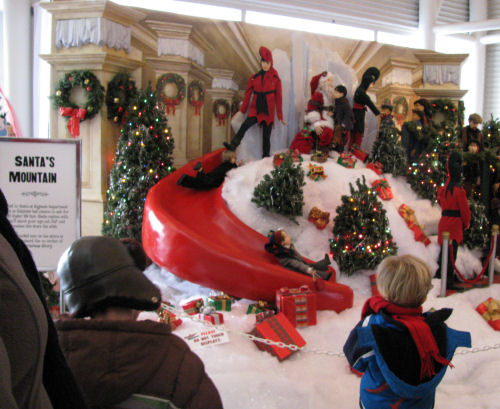 The displays include: The Department Store Window, Flick's Tongue and the Triple Dog Dare, It's a Major Award, Santa's Mountain at the Department Store,