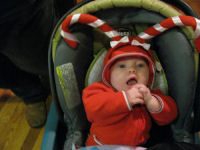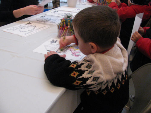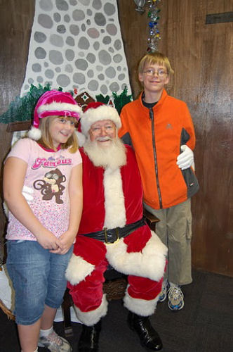 Brendan coloring....Tessa smiling...Brendan and Owen having their picture taken with Santa