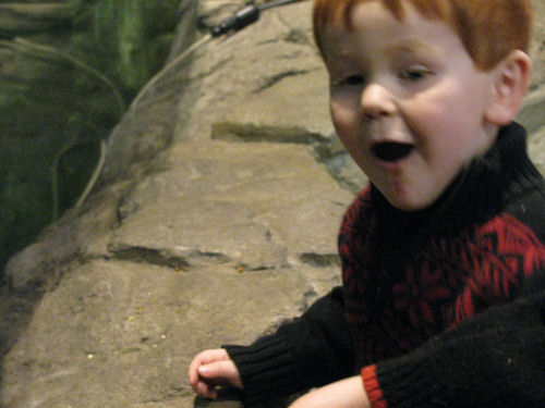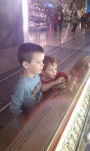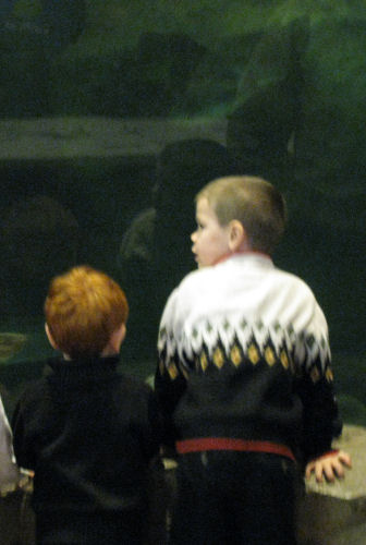 The boys enjoying the huge aquarium