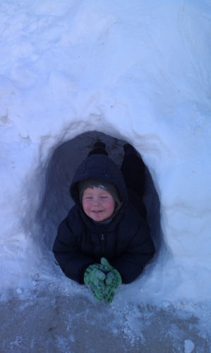 Brendan and Owen in thier snow fort