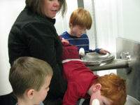 Getting drinks....The baby chicks....Grandma Kathy likes the fuzzy ones