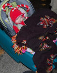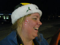 Hannah got a candy cane tattoo on her cheek and pressed it against Becky's cheek! Fun stuff. Tessa. I call this one Study in Black and Red.