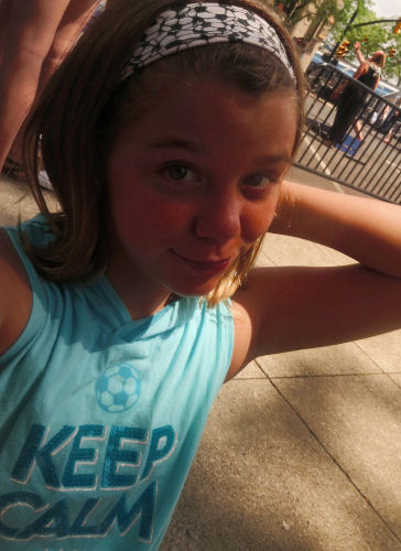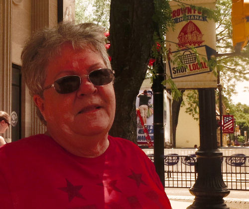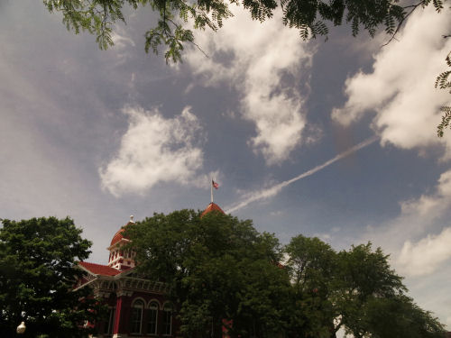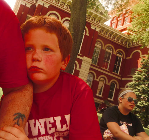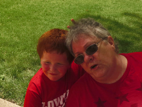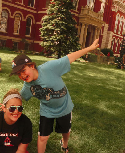 Resting on the courthouse lawn...Owen gave Grandma Kathy bunny ears