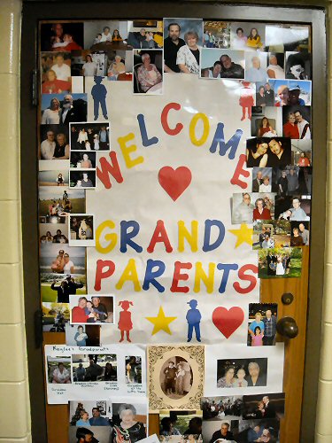 The collage on the door. Daphne's Grandparents are right above the "W" in Welcome