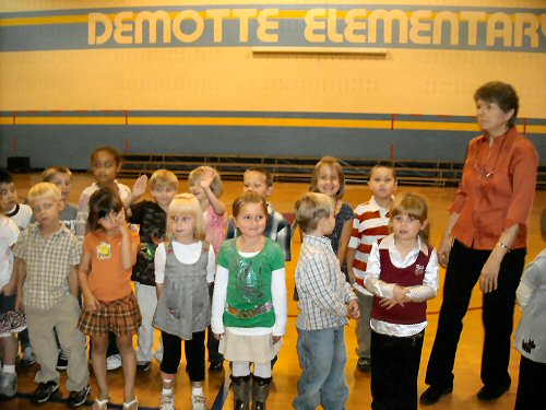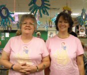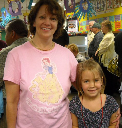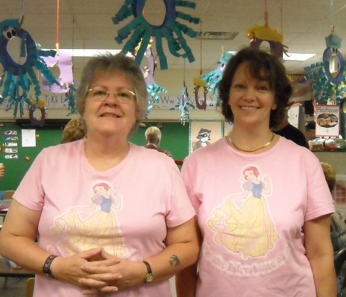 The Grandmothers in their matching shirts....Daphne poses by the classroom palm tree