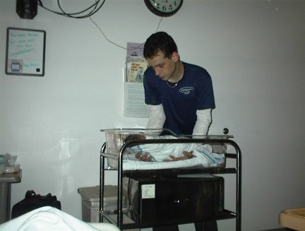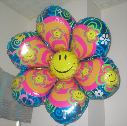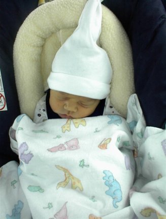 Card, balloon, flowers and Laura with the outfit for the ride home