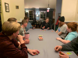 Then a bunch of them played "Apples to Apples" but it doesn't look like they are using "Lahm Rules" yet.