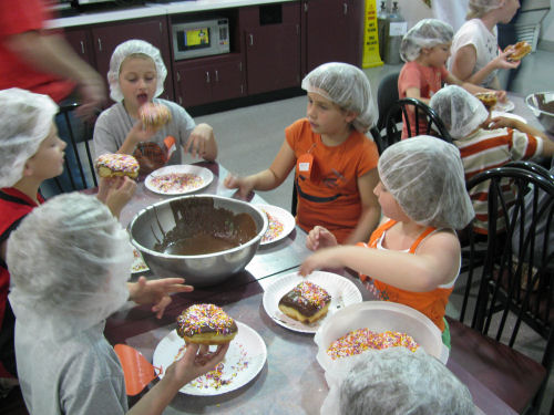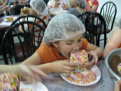 In the Donut Factory....Laura and Daphne....Daphne and Brooklyn