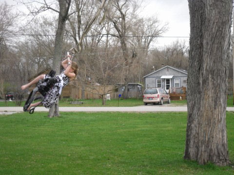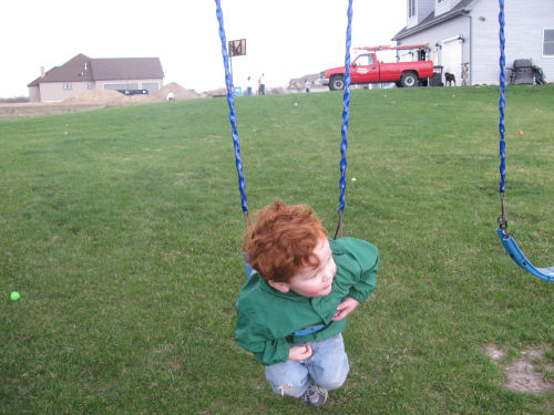 In their Easter dresses....Daphne trying out her dress on the swing