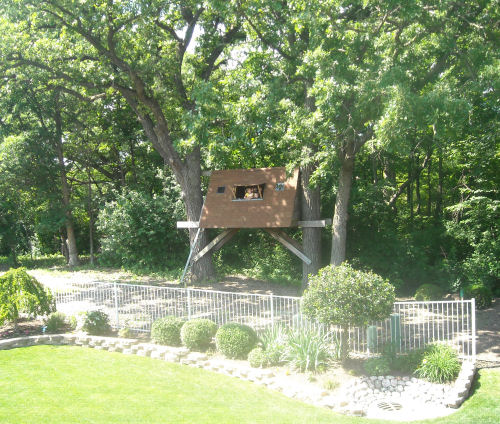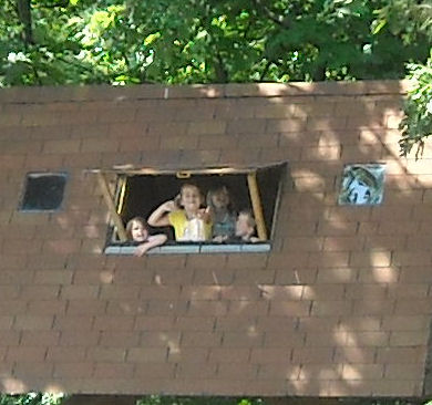 Erin, Daphne, Hannah and Brendan check out the tree house