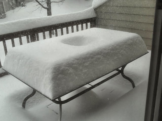 Hi everyone! Someone asked if I brought all this snow from Chicago and I said, "Of course!" What a blast! We're snowed in and got at least 18 inches outisde. We just sat in our living room and watched it fall, it really was beautiful. We have trees out back and the snow settling on them was just gorgeous.