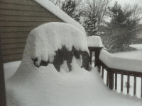 Jameson loves the snow! We let him out several times in the fenced-in back yard and he made a few paths. Toward the end of the storm, the snow was higher than he was!! Hopefully Carrie got some good pics and Aunt Kathy can put them on her website.