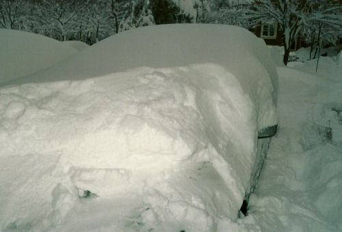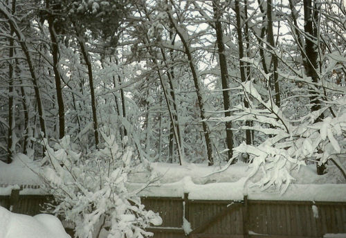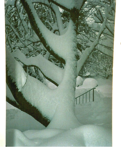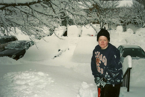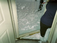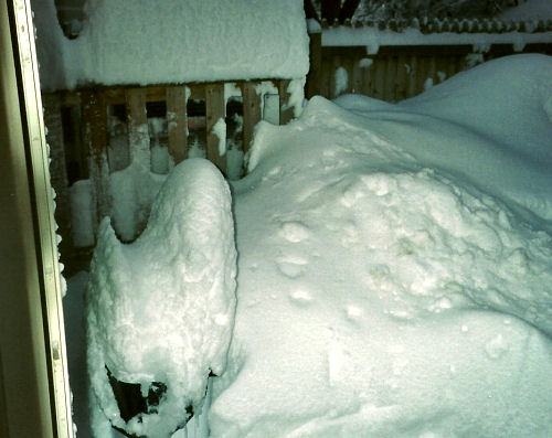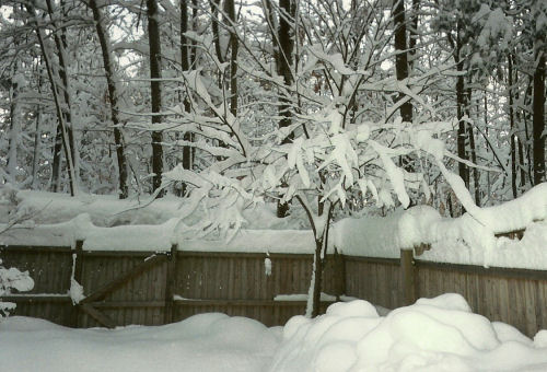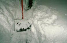 Shoveling to find the sidewalk....View from the Kitchen window....Their back yard