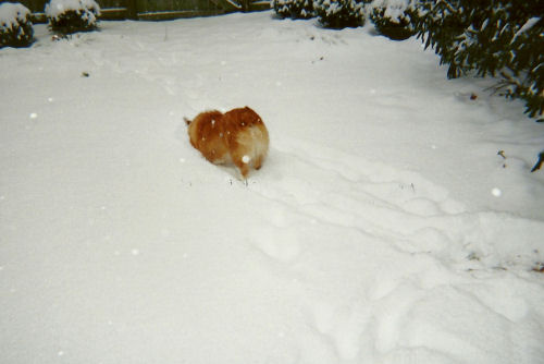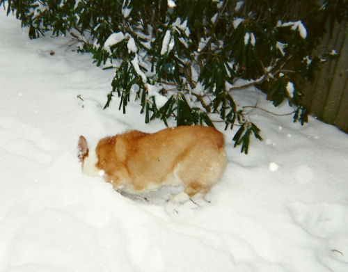 Sir Jameson with a faceful of snow....He loves to frolic in the snow....He also loves sniffing and burrowing.