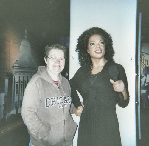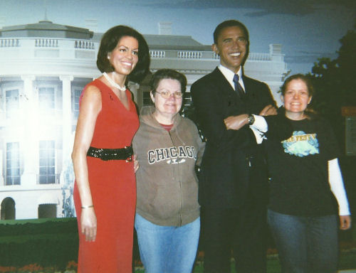 Eileen and Carrie pose with the Obamas. They were gracious hosts.