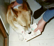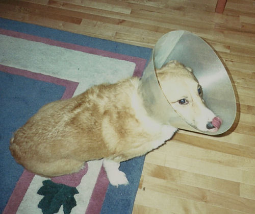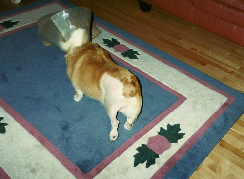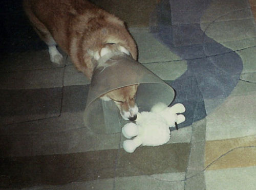 Sir Jameson did not dig his cone....His shaved hind quarter....Playing with "Lammy," his gift after surgery.