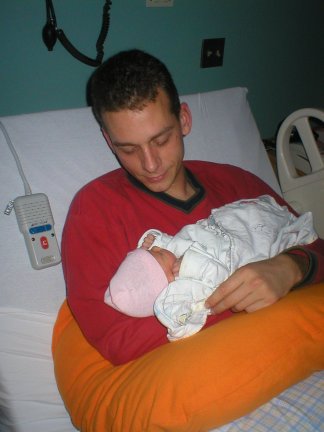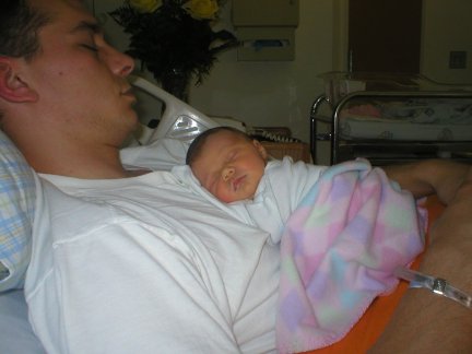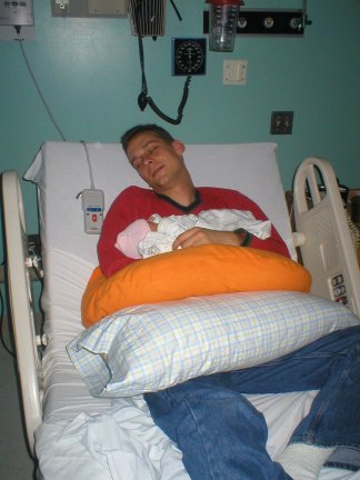 Daddy and Daphne....Erin napping with Daddy....Erin ready to go home.