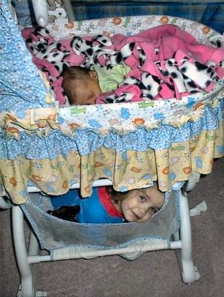 Daphne checks out Erin and then decides she'd rather suck her thumb and hold her boopie!