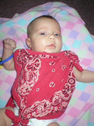 At two months old, Erin is dressed in Grandpa Terry's handkerchiefs.