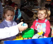 Erin gives away the stick after hitting the pinata....she then played with her caldron....Daphne gets in some hits.