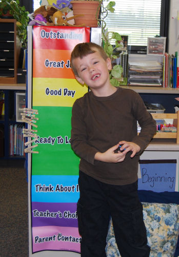 Brendan's Classroom picture....Brendan points to himself....Brendan's desk....And where he hangs his book bag