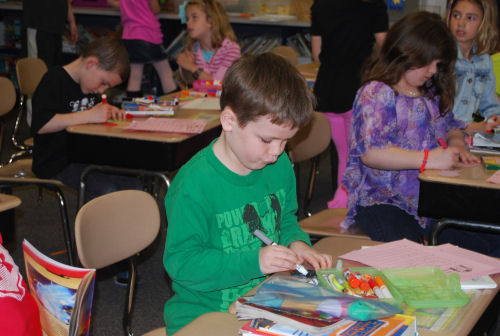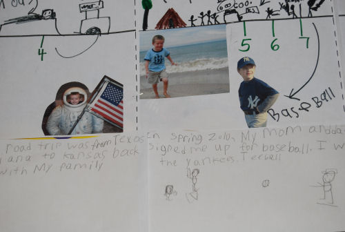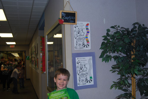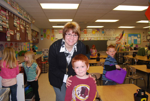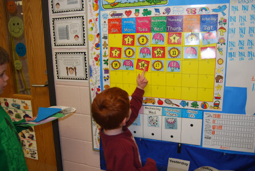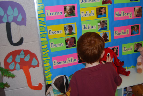 Owen with Mrs. Stoner....Showing Brendan his birthday....At his desk....In his room