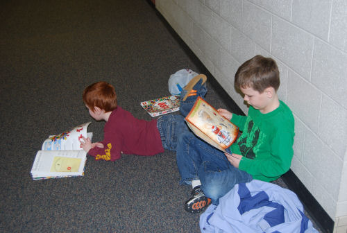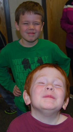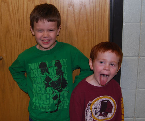 Two silly boys who are happy to be spending a school morning with Grandma Kathy