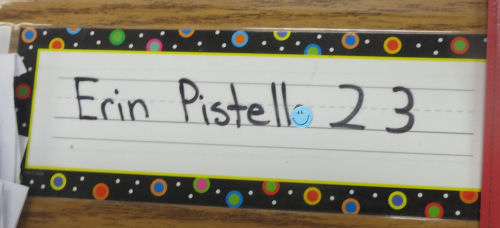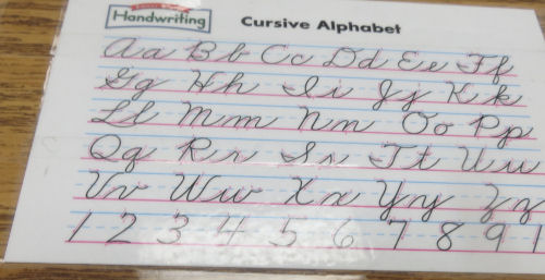Mrs. Cocot and Erin....Erin's name....Grandpa Jim and Grammy Jo....Writing cursive
