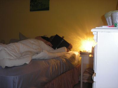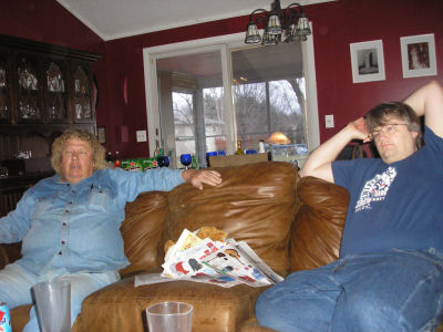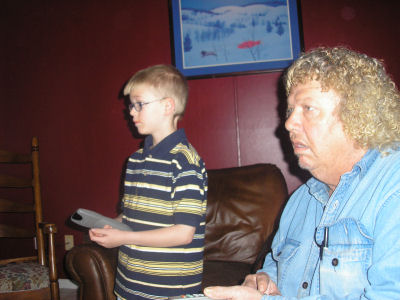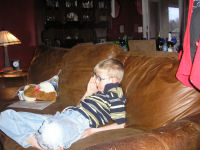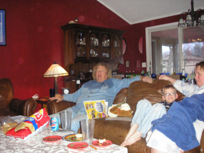 Alex and Grandpa Terry watching TV...Grandma Kathy reading in bed