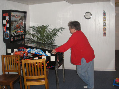 Self portrait...pinball machine...Grandma Kathy playing pinball