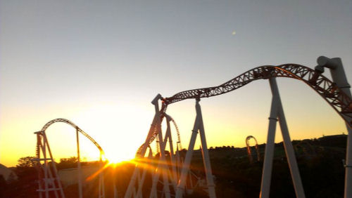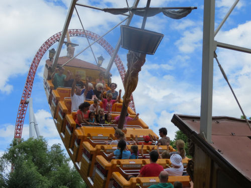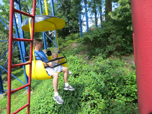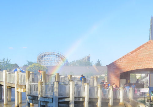 Watching a ride. First a big splash and then a rainbow. Laura and David are on the ride in the last picture!
