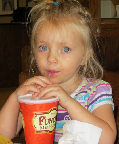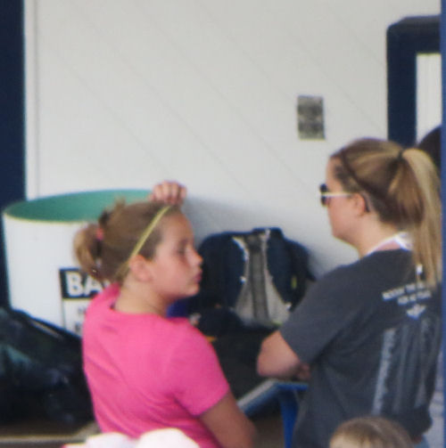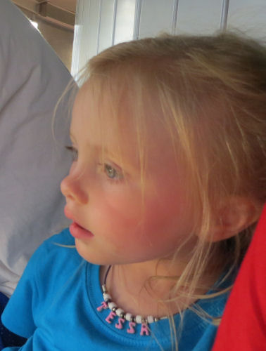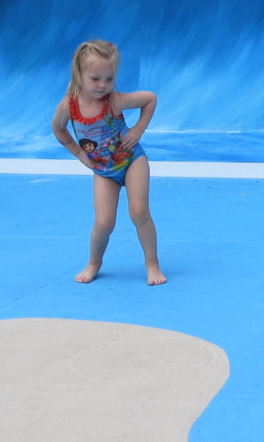 Tessa played in the water for about 1/2 an hour before getting her hair yet.