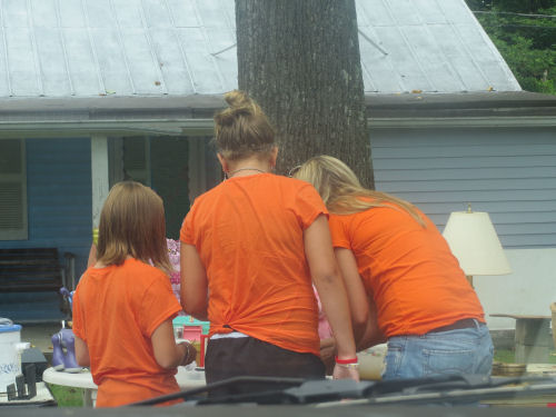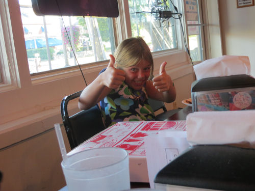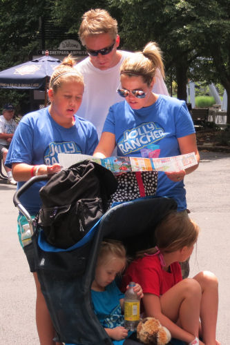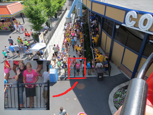 Stuff Erin and I saw: A sandal....ducks....Laura and Daphne in line for the Comet (a roller coaster)