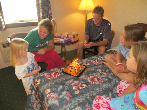 Tessa's "Surprise Party"....Nemo cake, Dora gifts and confetti