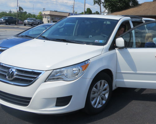 Waiting for the rental VW minivan....Erin and Daphne....Tessa....Our ride for the week