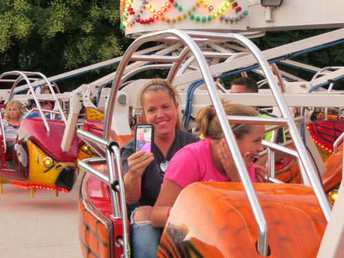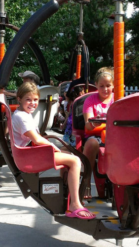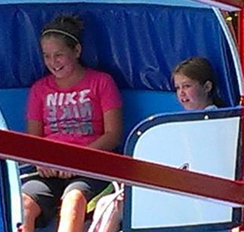 Daphne and Erin on the Tilt-A-Whirl.....Grandma Kathy watched a lot of rides