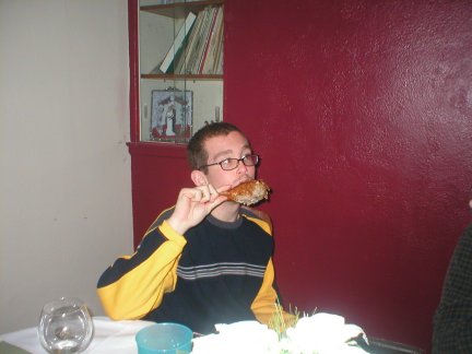 Fried turkey, great mashed potatoes and Kyle with a turkey leg.