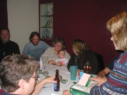 Hannah ate a lot of snow...Aunt Becky and Grandpa Bill played cards with Alex...Hannah and Grandma Linda.