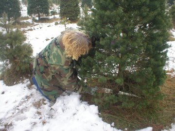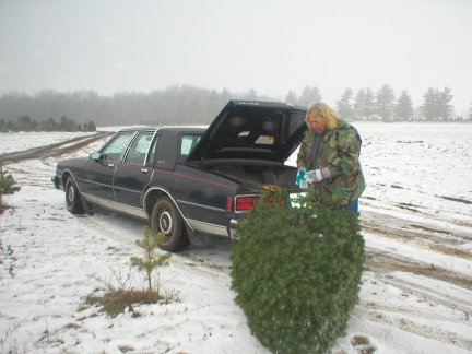 Terry cut down the tree and loaded it in the car. This 6 foot tree cost $15.90.