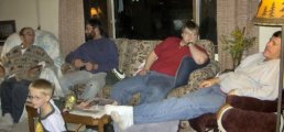 Hannah and Great Grandma Lombard...Great Grandpa Lombard, Andy, Bill, Bill and Alex watch football...
