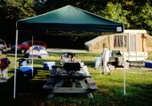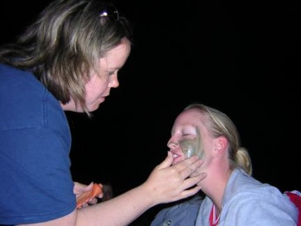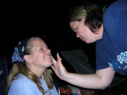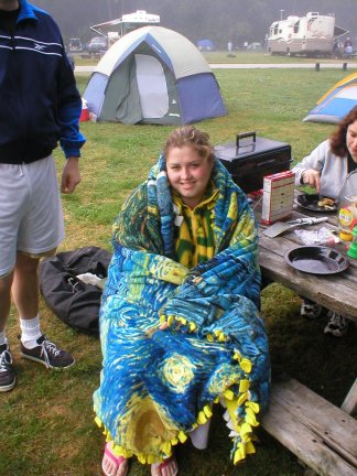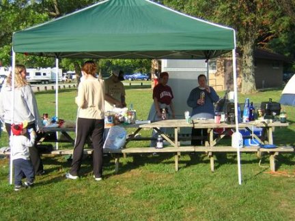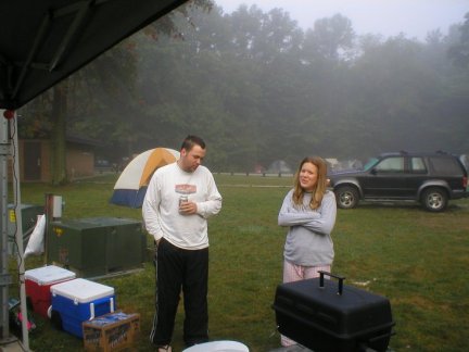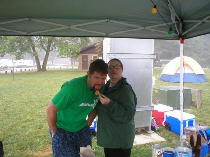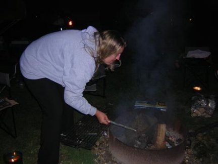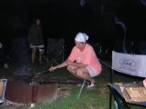 Kelly cooking corn....Mike and Wendy....Nicole tending to the fire