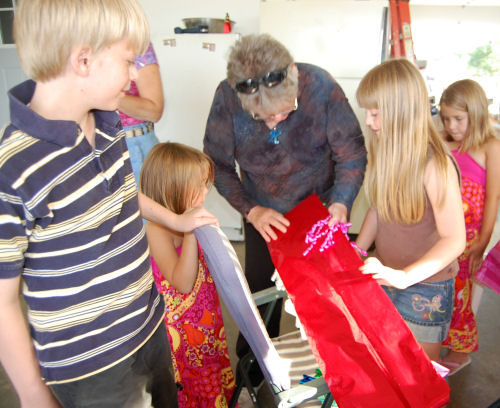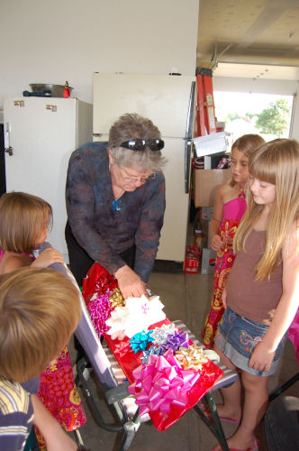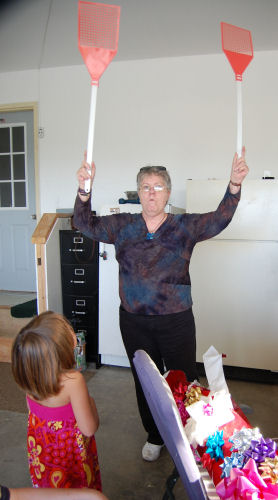 Kathy opening and displaying one of the many great gifts she received
