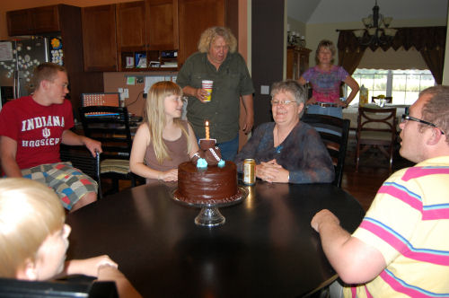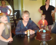 The funny and delicious cake....Hannah, Sue, Kathy, Brendan and Bridget....Alex, Michael, Hannah, Terry, Kathy, Sue and Kyle