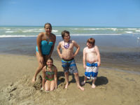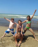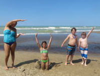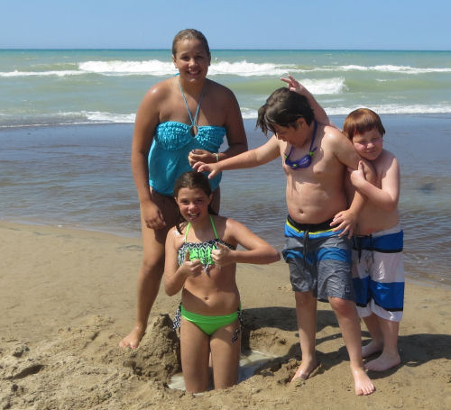 The kids had fun anyway sitting on the edge of the water