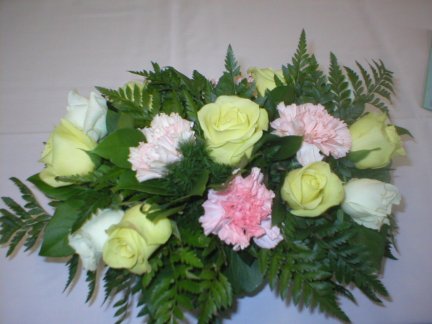 Jean and Jeff...the cakes...A diaper cake Laura made....A beautiful floral centerpiece Nicole made