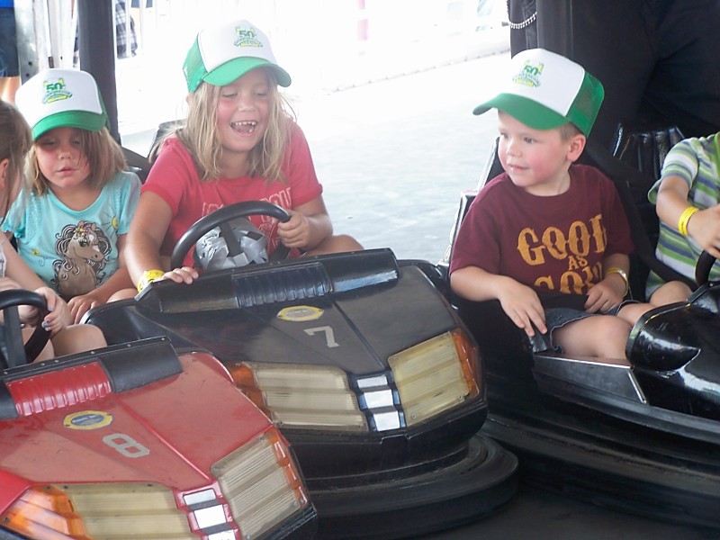 Erin, Daphne and Brendan on the Bumper Cars (Brendan even had a driver!)